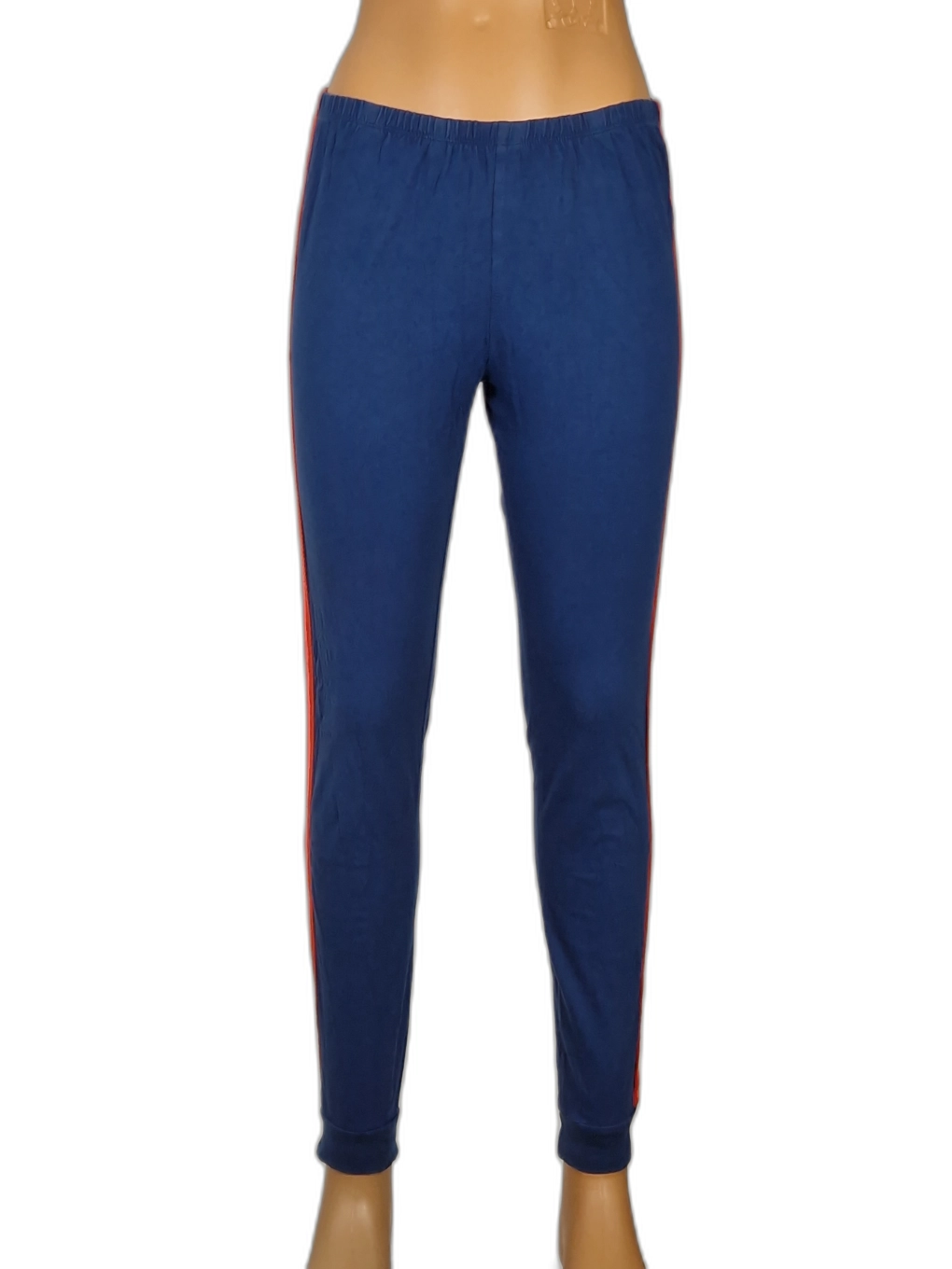 Има малка дупка отпред на левия крачол и дупка на десния крачол